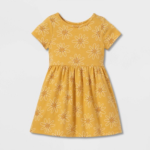 Toddler Girls Printed Short Sleeve Dress Cat Jack Yellow 12m Target