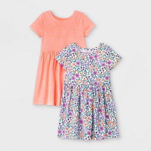 Toddler Girls 2pk Floral Solid Short Sleeve Knit Dress Cat Jack Pink 12m Target